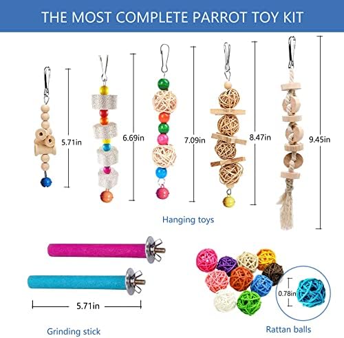 [CAREFULLY SELECTED FOR YOU]:Sysmashing Bird Parakeet Cockatiel Toys include different types entertaining toys for your bird to rest,perch,climb, hang,play,chew, explore and do other fun sport.make your pet love.