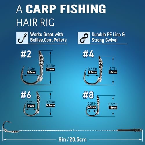 Works with All Your Favorite Carp Bait:From boilies to pellets to corn, our rigs are designed to work seamlessly with all types of carp bait. You’ll have everything you need to attract more fish and increase your chances of a successful day on the water.