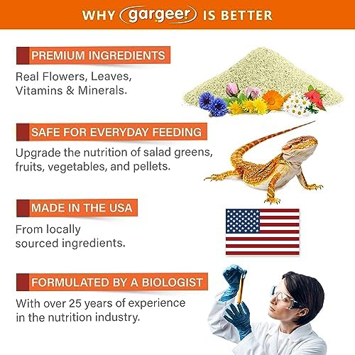 MADE IN THE USA using the finest ingredients and highest manufacturing standards, developed by our experienced herpetologist with over 25 years of experience. If you are not happy, we are not happy – don’t hesitate to send us a message! We’ll do our best to ensure your satisfaction with Gargeer.