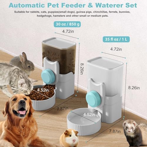 Large Capacity: The size of food dispenser water dispenser is 8.3*4.3*4.7 inches. Automatic water dispenser can hold a liter of water and 850 grams of food, to avoid frequent addition of water and food. The mouth of food bowl water bowl is 4.7 inches in diameter, which is ideal for small and medium animals, such as rabbits, chinchillas, guinea pigs, hedgehogs and ferrets.