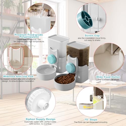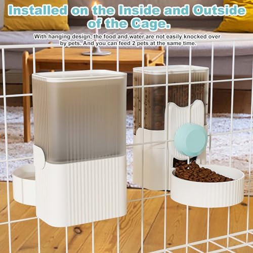 With hanging design, the food and water are not easily knocked over by pets. And you can feed 2 pets at the same time.