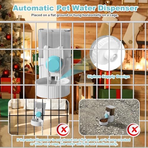 Two Ways to Use: Gravity feeder can be placed on a flat ground or hung on a cage. The knob can hung them tightly on the cage, while dog waterer with a flat bottom allows it to be firmly placed on the ground. It can be used everywhere.