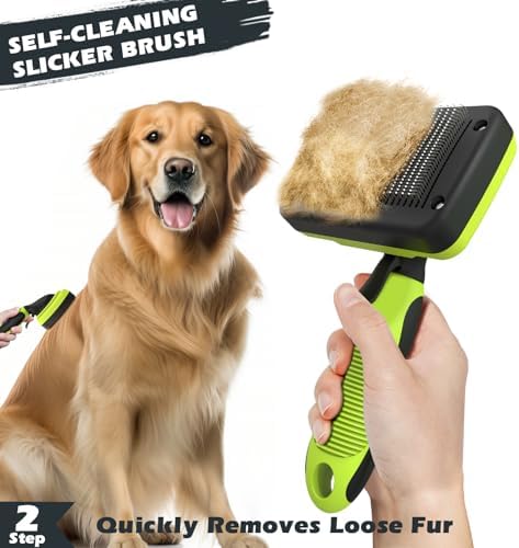 【Dematting and Deshedding Tools】Deshedding dog brush makes it easy to trim stubborn, tangled hair. Dog hair brush quickly removes loose hair, dander and residual dirt. The perfect deshedding solution for cats, dogs of all fur types