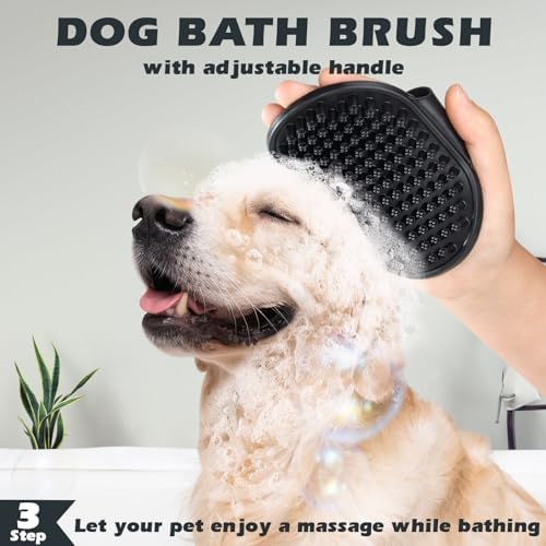 【Dog Bath Brush】With a User Friendly Design, the dog shampoo brush comes with a perfect adjustable ring handle, which can adapt to different sizes of hands, easy to hold .It can effectively remove pet hair while bathing or massaging.Let your pet fall in love with bathing and enjoy bath time
