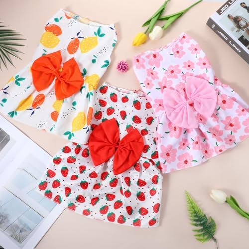 【Pet Clothes & Puppy Clothes for Small Dogs Girl】: Our collection includes 3 unique styles, each featuring cute floral patterns and elegant bows. These clothes for dogs and cats are not only stylish but also practical, making them a great addition to your pet’s wardrobe. The dresses are easy to put on and take off, ensuring a hassle-free experience. Designed with your pet’s comfort in mind, the elastic waistband ensures a snug fit, while the sleeveless design allows for easy movement.