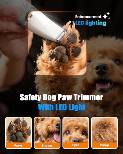 【Upgraded LED Light Design】-This dog grooming clipper is designed with an independent LED Light, allowing you to easily and quickly see the skin of your pet. Helpful to trim their small areas of fur with clarity and safety, avoid over-trimming, and minimize harm to your furry friend. Effectively keeps pet paws clean, prevents matting, and eliminates uncomfortable pressure points.