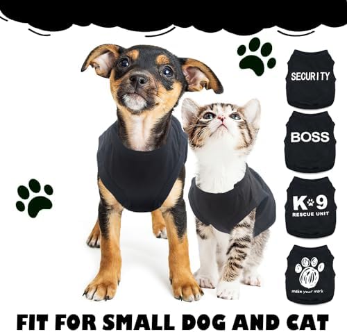 ★【Set of 4 Pack】 The black dog clothes comes in a pack of 4, which includes 4 patterns (k9, security, make your mark). It features a cute and funny pattern, making it a great choice for pet owners who want to dress up their furry friends.