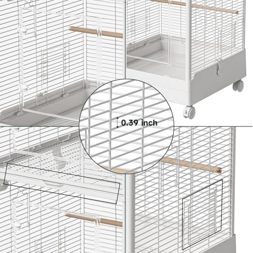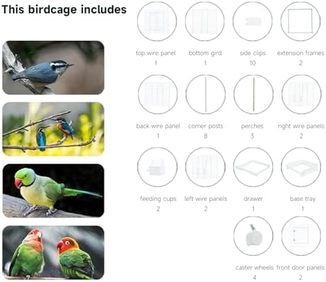Crystal Clear and Elegant White Design: Featuring a fully transparent design, this birdcage allows for clear visibility, making it easy to observe your birds. The sleek white finish complements any room’s decor, adding a touch of warmth and sophistication to your home.
