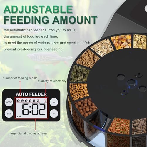 2.Adjustable Feeding Amount: The automatic fish feeder allows you to adjust the amount of food fed at each session, catering to the needs of various sizes and species of fish, preventing overfeeding or underfeeding