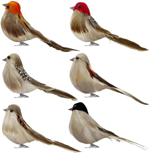 Six Unique Styles: Set includes six distinct sparrow variations (3.93×1.37×1.77 inches) with different feather patterns and colors, offering diverse decorating options for sophisticated home styling