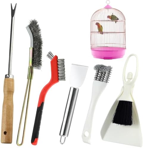 Make bird cage cleaning effortless.The brush in our kit scrubs away filth, the fork lifts out leftovers, the shovel whisks away waste, and the broom/dustpan sweeps up stray particles. Simple, effective, and essential for a clean bird cage.