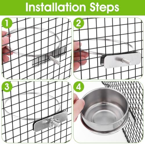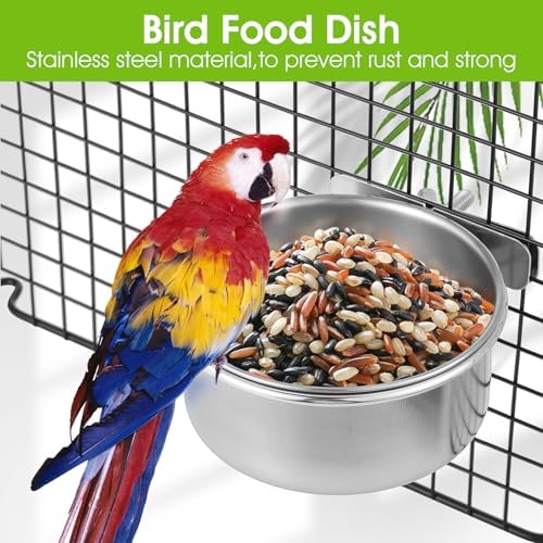 Easily Install & Clean: Stainless steel bird bowls with clamps for easy installation and removal. Bird bowls can be adjusted to any height. Very sturdy, simple and convenient for you to install. Bird bowls are easy to clean by water, you don’t spend much time in washing, easy to place and remove.