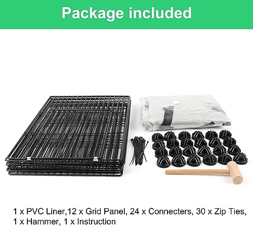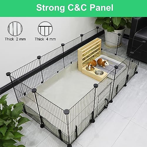 Easy to assemble: Easily secures the guinea pig playpen with the multi-angle abs connectors; Plus the included 30 nylon ties reinforce the cage for added security; Then unfold the rabbit habitat cage liner, align the grid and stick the Velcro to ensure a solid fit and the installation is complete