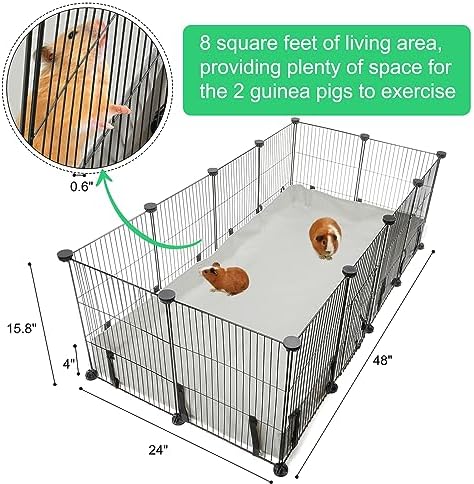 8 square living room: Rabbit playpen indoor has 8 square feet of living area, providing plenty of space for the 2 guinea pigs to exercise; With a 4 x 2 grid combination (12 panels), one of which comes with a door to offer the guinea pigs freedom of access; Each of our grids measures 12″ x 16″