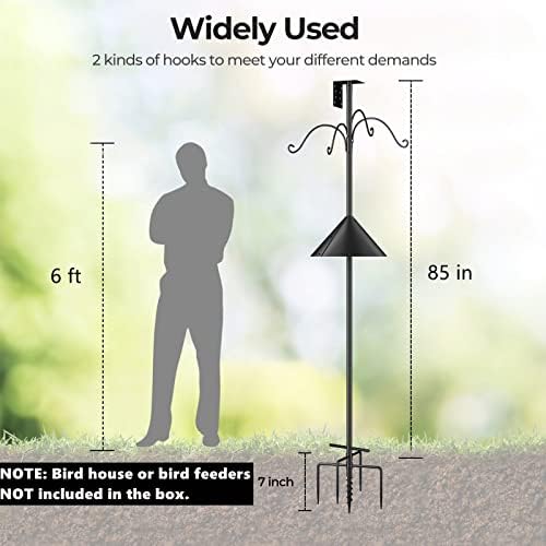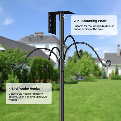 VERSATILE POLE SET: The pole for bird feeder features 4 shepherd hooks, allowing you to decorate your garden with lanterns, flowerpots,etc, making it both functional and visually appealing. 30-day money-back and one-year replacement policy is guaranteed.Feel free to contact us any time when