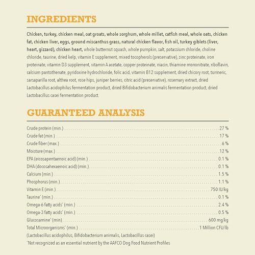 This high protein dog food recipe is crafted with 60 percent* animal ingredients including free-run chicken***, turkey and eggs, balanced with 40 percent** wholesome grains, vegetables, fruits and nutrients.