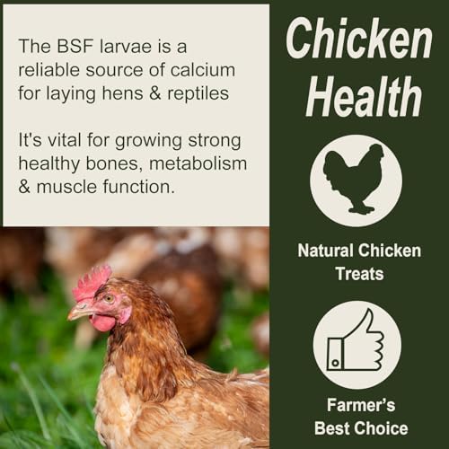 PACKED FULL OF ENERGY: When you chickens eat the larva, they’re getting the benefit of all that energy. Black Soldier Fly larvae make a great staple food or treat for chickens and many reptiles, like bearded dragons, leopard geckos, poison dart frogs, crested geckos, day geckos, and turtles etc.