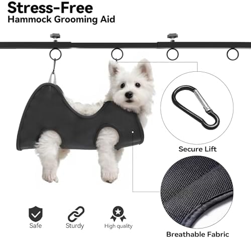 Heavy-Duty Steel Frame: Built from durable steel, the frame won’t bend even when fully suspending dogs under 80 lb. Strong enough to handle pulling from large dogs during grooming.