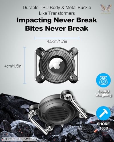 This Airtag holder for dog collar Made of hard and wear-resistant TPU material,Detachable metal buckle,harder than silicone and more wear-resistant than PC,Dog collar airtag holder with a surface made of carbon fiber, the airtag is not afraid of dog bites and sharp rock friction, keeping the dog airtag intact and the signal intact