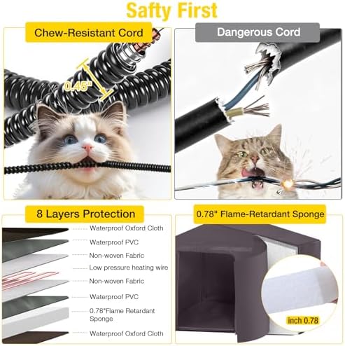 Safety Heated Cat Pad: Equipped with a UL-tested heating pad with automatic temperature adjustable between 89-116°F. The anti-gnaw cable and removable, washable cloth cover ensure convenience and safety.