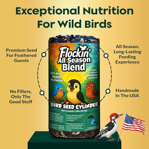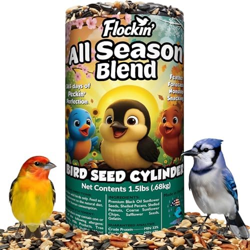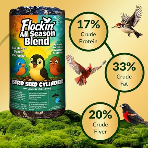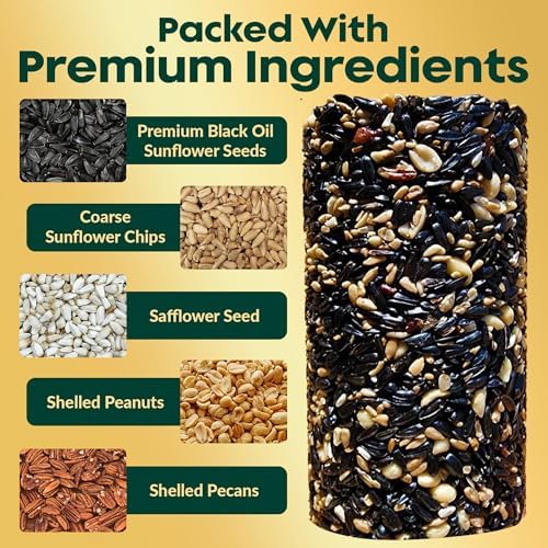 📏 PERFECT SIZE, PREMIUM INGREDIENTS – These bird feeder cylinders measure 4″ x 7.75″ and are loaded with Black Oil Sunflower Seeds, Coarse Sunflower Chips, Shelled Peanuts, Shelled Pecans, & Safflower Seeds