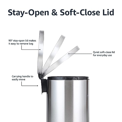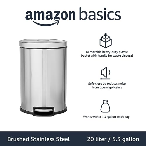 This small trash can with lid is great for kitchens, bedrooms, bathrooms, or near your office desk. Featuring a durable stainless steel construction, this metal trash can with lid resists smudges, allowing it to remain sleek and clean in appearance. Its versatile 20 liter / 5.3 gallon capacity makes it an ideal kitchen trash can while also serving as a compact kitchen garbage can with lid option. Designed with a soft-close foot pedal, it provides quiet and convenient operation, reducing noise disruptions with each use. The removable inner bucket and handle simplify the disposal process, making it practical for everyday use. Whether you need a trash can kitchen addition or something for dorm rooms, this trash can bathroom with lid fits seamlessly into any setting.