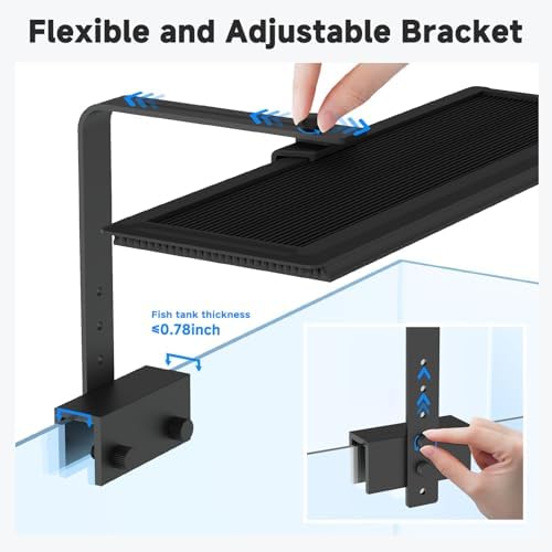 EXCELLENT ABS MATERIAL & FLEXIBLE ADJUSTABLE BRACKET: With flexible moving design, you can adjust the width and height of the bracket. With clamp, equipped with screws for tightening and are safe to use on framed or frameless aquariums up to 0.78 inches thick.