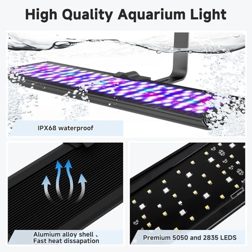IP68 WATERPROOF & MEMORY FUNCTION: The highest level of IP68 waterproof ability could be directly soaked in water for use. In the event of a power outage or close, the fish tank light will retain its previous settings and mode. Once the power is restored, the light will light up in the previously set color, brightness, and lighting time without resetting.