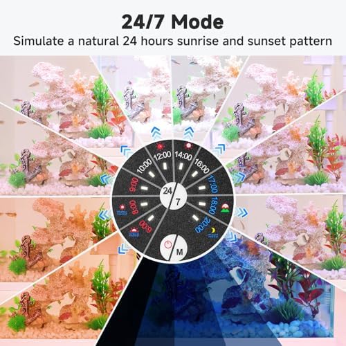24/7 LIGHTING MODE: Simulate a 24-hour sunrise and sunset pattern to promote the growth of plant life, starting with warm orange light at sunrise, moving to 100% brighter full-spectrum light at noon, and then to starry blue light at night. The default light turns on automatically at 6 am and off at 23:00. The automatic on/off time can be postponed or advanced the overall default time period.