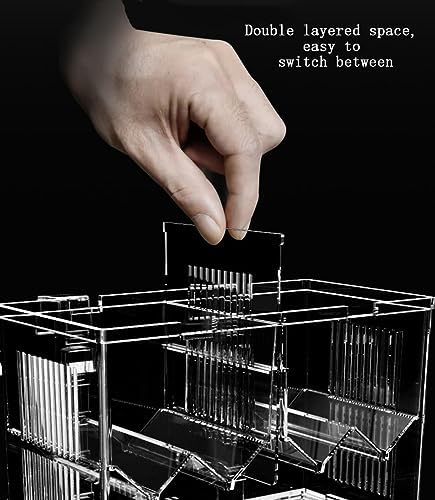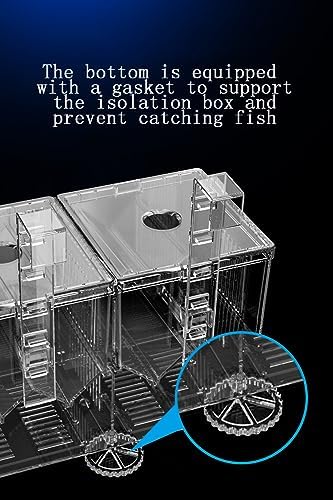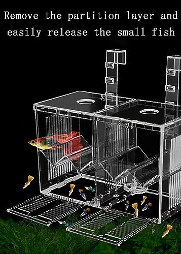 2、Self-floating Design: 2-layer combination does not take up space; unique floating transparent plastic cover design can prevent fish from leaving the isolation room and protect newborn fish.