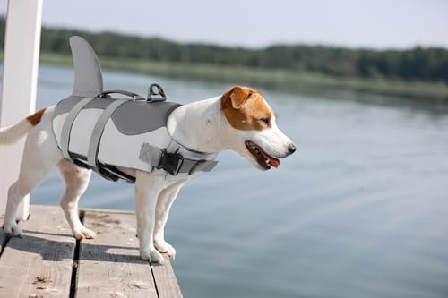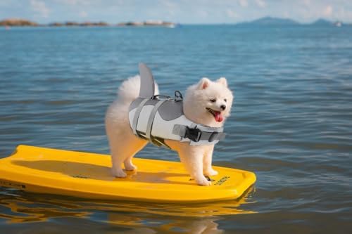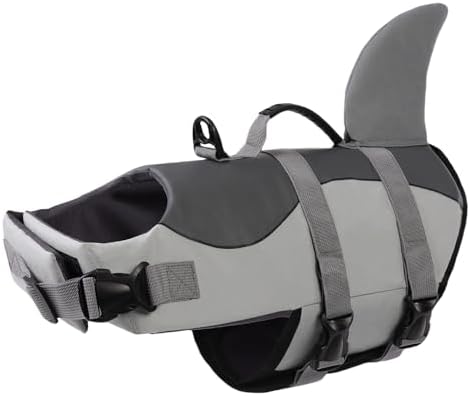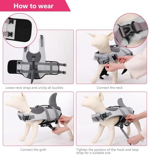 PRACTICAL DESIGN – Adjust belt with the quick-release buckles makes the dog life vest saver becomes easier to put on / off, you can also adjust the belt to fit your pet perfectly. Furthermore, the heavy-duty D-ring hook is perfect for dog leash to prevent your dog from running around.