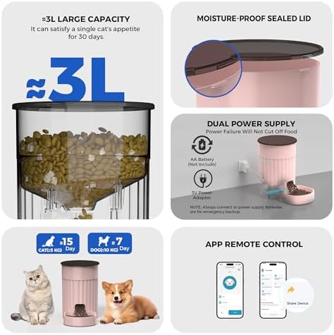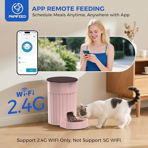 Dual Power Supply & Memory function – The chip of our pet feeder has a memory function, even if the network is disconnected, the feeder can continue feeding according to the previous feeding schedule. Our automatic pet feeder has two power systems,if the power goes out, the cat food dispenser will automatically switch to battery mode,There is absolutely no need to worry about your pet going hungry.(Note: 4 AA batteries are not included. The battery is for emergency power supply and has a standby time of about 15 hours. It cannot be connected to the internet when using battery power)