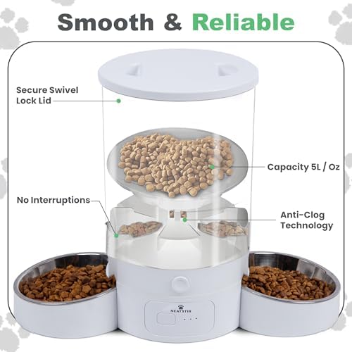 If you’re juggling a busy schedule but want to ensure your cat is always taken care of, the Neatstir Automatic Cat Feeder is the perfect solution. Designed with convenience and your pet’s well-being in mind, this smart cat feeder allows you to schedule feedings, control portions, and even handle multiple meals a day. It’s especially great for pet owners who want to promote a healthy diet or manage their cat’s weight effortlessly. Whether you’re working late, traveling, or just trying to keep a consistent routine, this feeder ensures your furry friend gets their meals right on time. Plus, with its durable design and large food capacity, it’s perfect for long weekends or multi-cat households. Give your cat the love and care they deserve, while making your life easier with the Neatstir Automatic Cat Feeder for 2 cats.