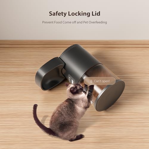 Easy to Use & Maintain: IMIPAW Auto Cat Feeder inbuilt LCD screen allows quick setup and press both UP & DOWN together to manually dispense 1 portion; Proper angle so that food will not accumulate in the food outlet, and the cat food tray are removable for cleaning. The secure lid lock design prevents pets from getting food