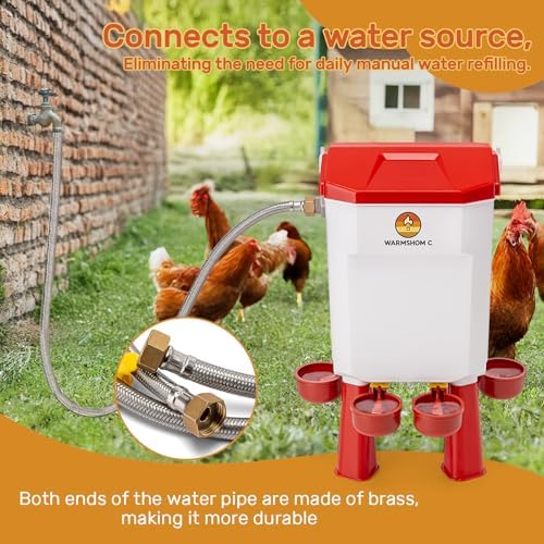 【Suitable for Various Scenarios】Easy Installation with Complete Accessories,No Tools Required:You can mount the chicken waterer on a fence or wall using S-hooks or screws,or simply place it anywhere inside the chicken coop.No water faucet near your chicken coop? No worries! Our garden hose connector kit allows you to extend the water line,compatible with both 3/4″and 5/8″hoses,threaded or not.