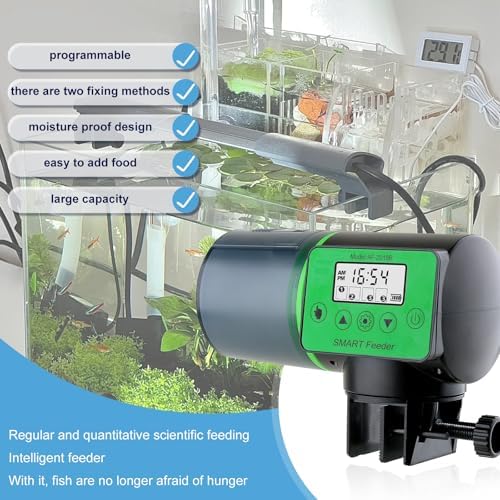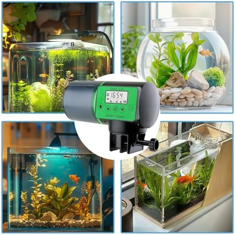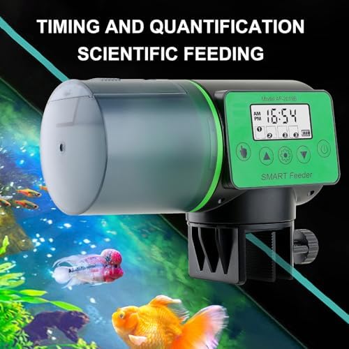[LCD screen display]: Clearly shows the current time and feeding schedule, facilitating monitoring and adjustment of feeding settings. Moisture Prevents Design: Moisture-resistant hopper keeps fish food dry, won’t get wet or jammed.It accommodates most types of food