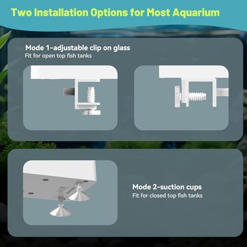 2 Installation Methods: You can either mount the automatic betta fish feeder to the tank wall securely with the adjustable clamp base or stick it to the tank cover using the suction cup.It fits most square tanks or aquarium,offering flexibility in installation.
