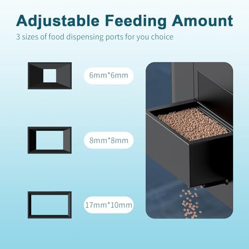 PORTION CONTROL: Adjustable food outlet helps regulate feeding amounts to prevent overfeeding and maintain water quality