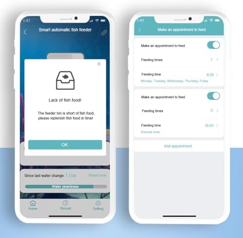 SMART OPERATION: You can set and view the feeding records remotely in the APP, and remind you of material shortage. You don’t need to worry about feeding the fish when you are busy at work, on business trips or on holiday trips.
