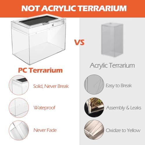 Sturdy and Durable: This compact mini terrarium is made from thick and durable tempered PC materials, ensuring safety. It offers a 360-degree view of the habitat, with a tough screen top for ventilation and UVB infrared penetration