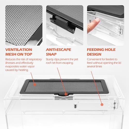 Designed for Easy Feeding: Our amphibian feeder features convenient feeding holes and escape-proof door locks, eliminating the need to open the lid multiple times for feeding. It’s designed to make feeding easier and more convenient for caretakers