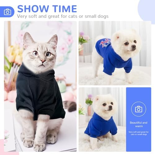 This dog hoodie is made of cotton and inside fabric has fleece design,soft and comfortable to touch and wear.Lightweight, pullover design and elastic cuffs and hem easy to put on and take off.Great for cold weather.