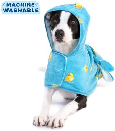 Versatile Hook and Loop Closure: This bath robe for dogs uses a secure hook and loop closure, ensuring a snug fit for both large dogs and smaller breeds. A perfect addition to your dog accessories, it simplifies the drying process after a dog bath.