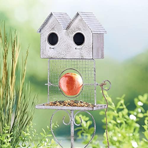 Fruit Bird Feeder: Hold an apple, orange halves fruit by the fruit skewer to attract fruit-eating birds such as Orioles, Waxwings, and Jays to your yard with this feeder. The tray under fruit skewer can be filled with bird seeds to attract an array of hungry wild birds.