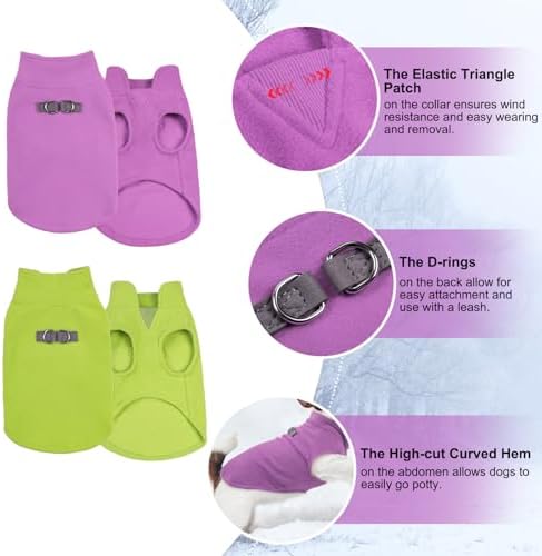 Dog sweater jacket coat adds elastic band around the fleece jackets neck, more free space for the dog.Slip-On. Slip-Off. No extra zippers, dog sweater jacket making it easy to put on and ultra lightweight.Double D ring attachment is easy to leash, single O ring is easy to break.