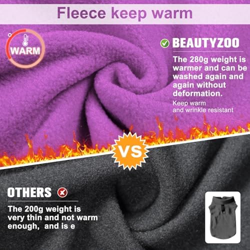 Dog Winter Fleece Jacket- Machine Washable, which is easy to clean, do not need hand wash. Made with 100% polyester to keep moisture out like freezing rain or snow, and to help keep warm air in, so your dog always stays warm in chill days. Our dog fleece vest is comfortable, lightweight, durable and made to last. It can also fit your small cat!