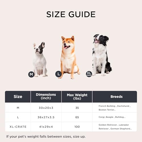 Various Sizes & Versatile Design: Available in 3 sizes for all breeds: M: 30″x20″x3″ (up to 35 lbs); L: 36″x27″x3.5″ (up to 65 lbs); XL-Crate: 41″x29″x4″ (up to 100 lbs). At Bedsure, our designers make sure that every pet enjoys the cozy vibes no matter their size or age. Ideal for pet owners seeking a standalone pet bed, a crate bed or kennel mat.