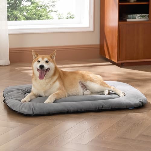 Recommendation Dimensions: Available in fives sizes for all dog breeds,Size S: 23x17x1 inch up to 15 lbs. Size M: 29x18x1 inch up to 25 lbs. Size L-Crate: 35x22x1 inch up to 50 lbs. Size XL: 41x27x1 inch up to 70 lbs. Size XXL-Crate:47x29x1 inch up to 90 lbs. Before making your purchase, please kindly measure both your dog’s size and the dimensions of your dog crate or refer to size guide image to find the best fitting dog bed.