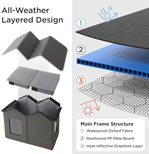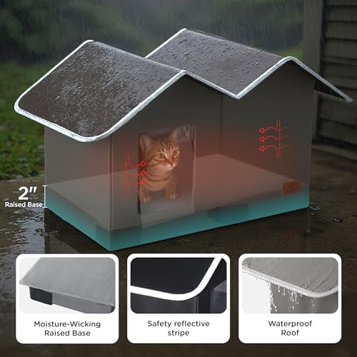 Moisture-Proof Base: Elevated bottom design isolates moisture from the ground to keep the cat house interior dry.
