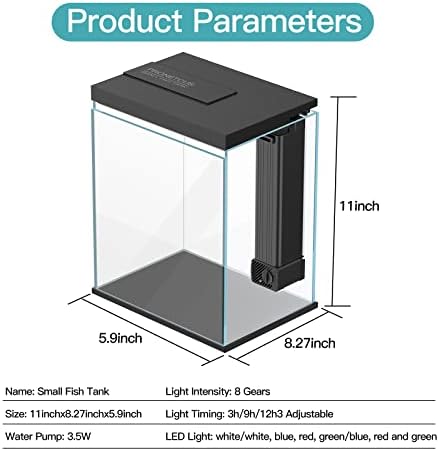Healthy Habitat: The small fish tank is equipped with adjustable brightness lights and 3/9/12 hour timer settings, allowing you to provide a healthy and stress-free environment for your favorite fish.